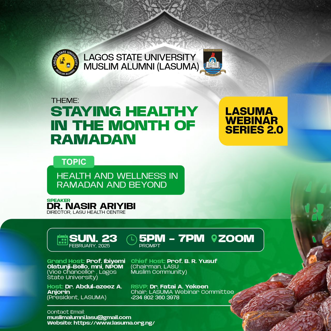 The Lagos State University Muslim Alumni (LASUMA) has finalized arrangements for her highly anticipated Pre-Ramadan 2025 Lecture